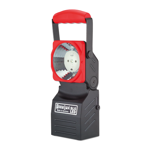 Das Gehäuse der staub- und spritzwassergeschützten Sicherheitsleuchte Modell AccuLux SL 5 LED besteht aus robustem Kunststoff. Durch den 110° schwenkbaren Leuchtkopf und der mitgelieferten orangen Vorsatzscheibe ist die Leuchte flexibel z.B für den Blinkbetrieb als Warnleuchte einsetzbar. Der wiederladbare, wartungsfreie Blei-Gel Akku ohne Memory-Effekt ist durch das intelligente Schaltungslayout tiefentladegesichert und dauerladbar. Automatische Umschaltfunktion der LED-Hauptleuchte auf die LED-Pilotlampe ist ebenfalls integriert. Die Leuchte verfügt über eine Restkapazitätsanzeige durch vier rückseitig angebrachten LEDs. Der Ladezustand wird durch Blitzen der Pilotlampe signalisiert. Die Ladestation L 5 mit optimierter Ladetechnik in minimalen Abmaßen garantiert Montagemöglichkeiten für kleinste Lücken im Kfz-Bereich oder Gebäude. Die AccuLux SL 5 LED kann an 230 V AC sowie 24 V und 12 V DC geladen werden. Sicherheits-Notlichtfunktion ist vorhanden.