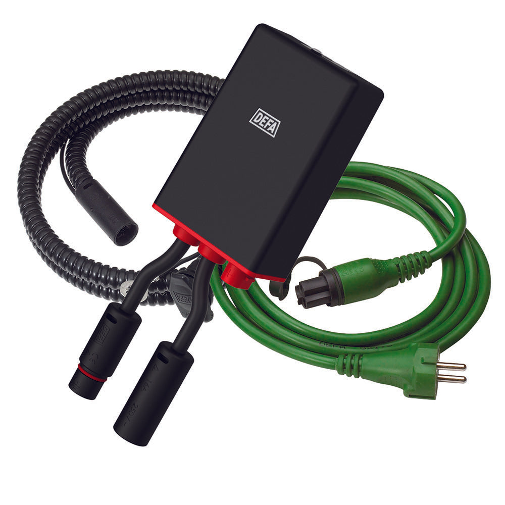 - Am 230V Ausgang kann ein weiters Ladegerät oder anderes DEFA Zubehör angeschlossen werden.