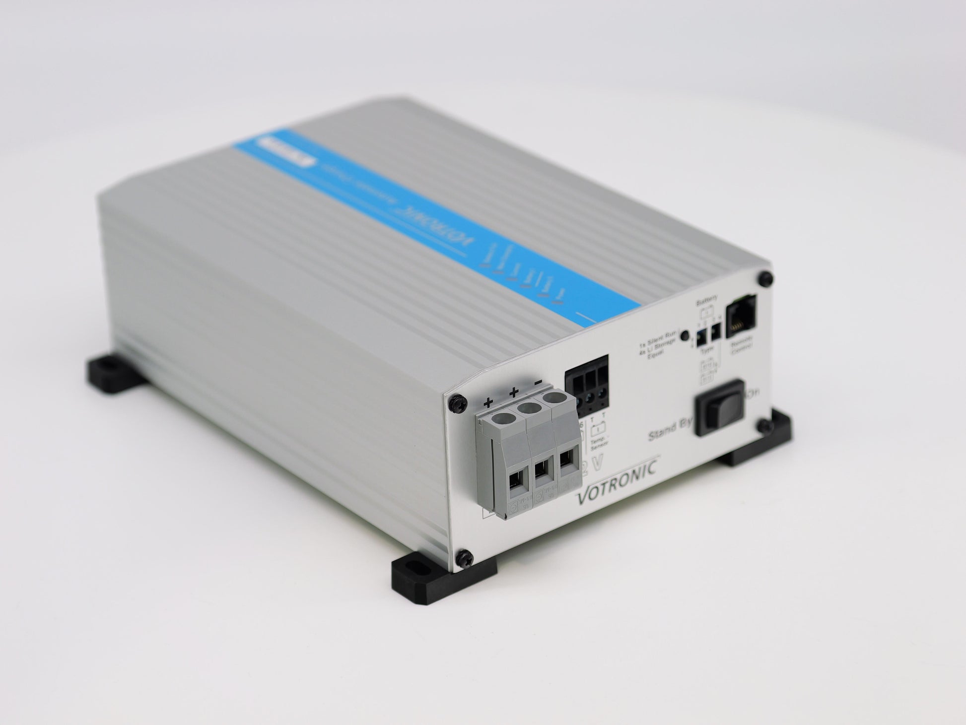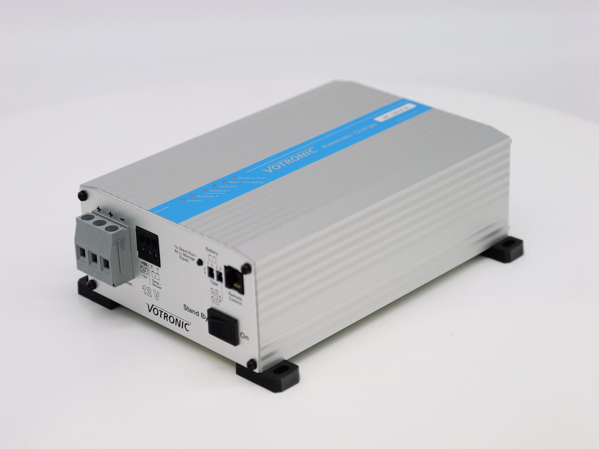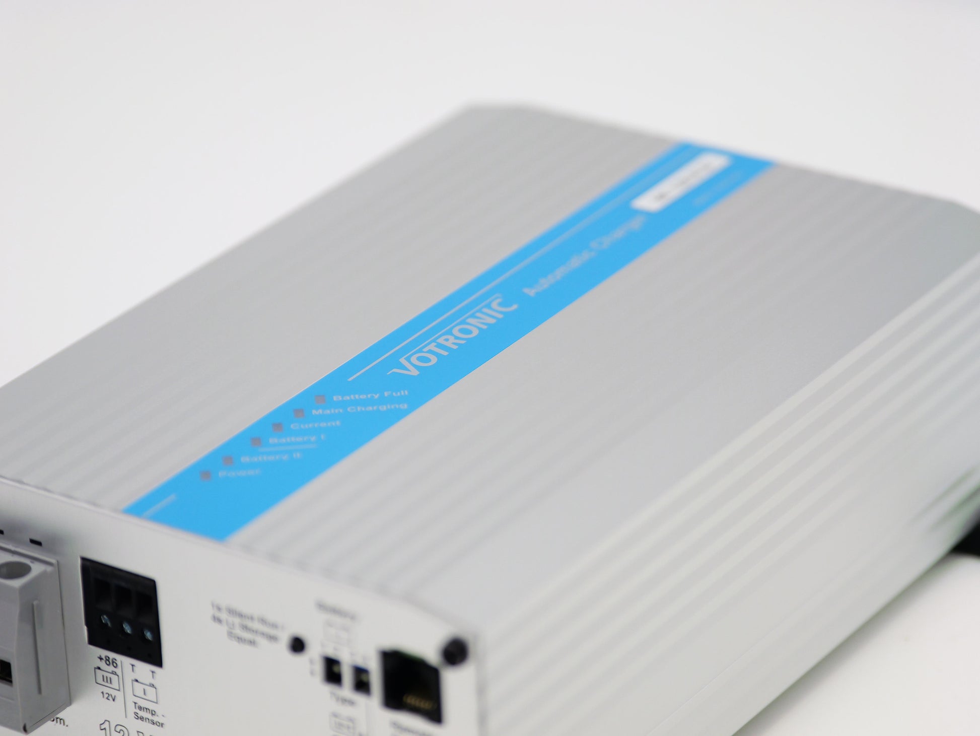 Speziell auf Einsatzfahrzeuge abgestimmtes Ladegerät von Votronic mit einstellbaren Ladeprogrammen und 8-stufiger Ladekennlinie.