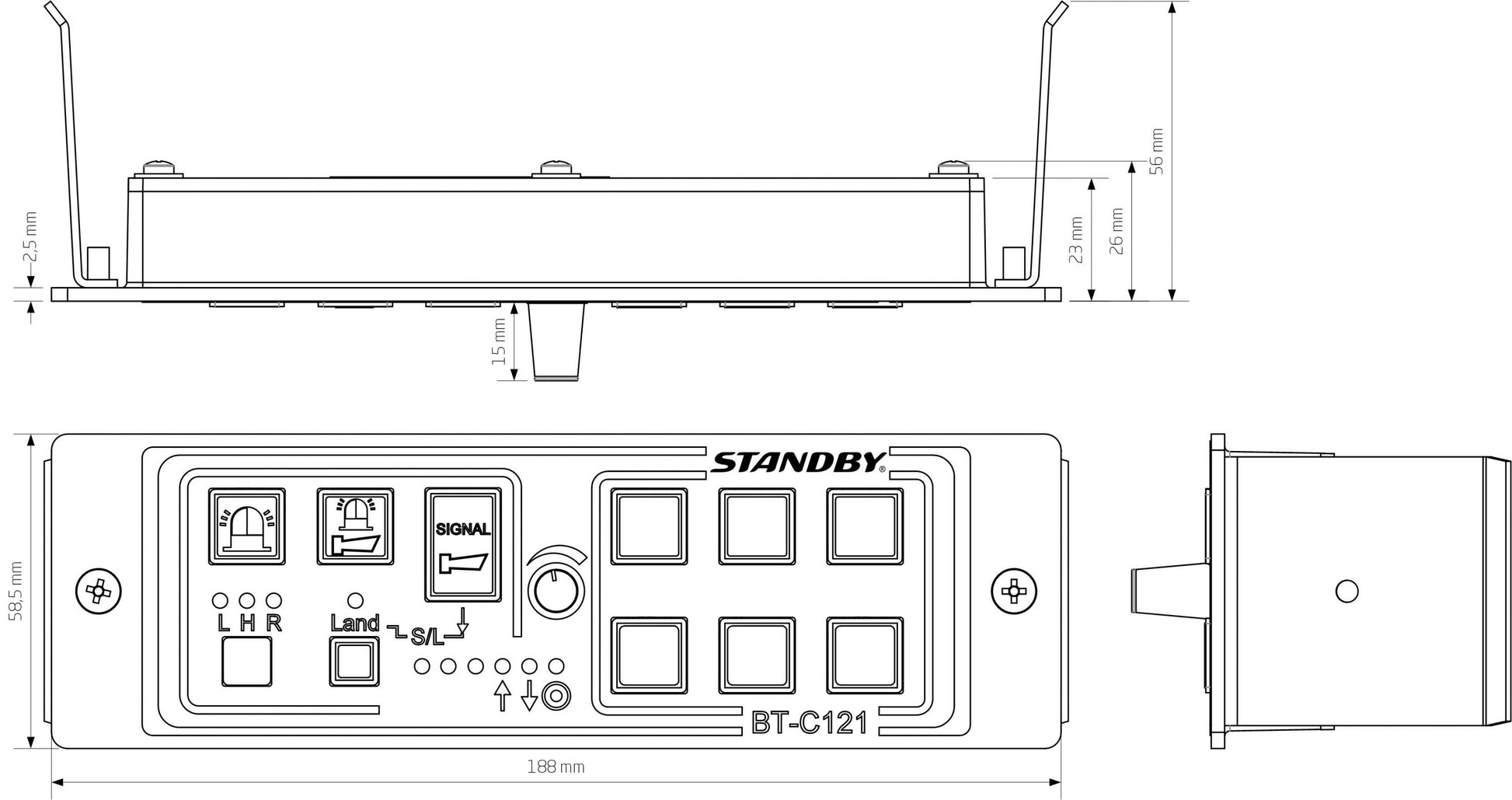 Das CAN-Bedienteil BT-C 121 ist für den Verbau in DIN Radioschächten geeignet. Individuelle Belegung der Funktionstasten mit Abhängigkeiten werden nach Kundenwunsch umgesetzt.