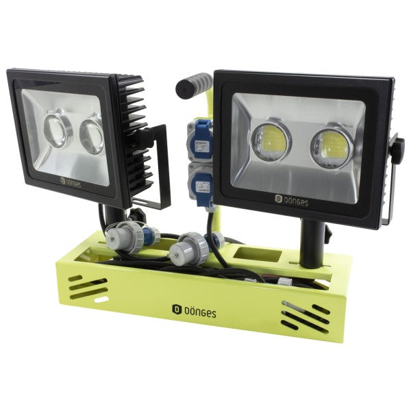 Die Dönges-Scheinwerfertrage dient zum schnellen Ausleuchten einer Einsatzstelle und lässt sich auf jedem Stativ mit DIN-Zapfen aufsetzen. Da kein weiterer Aufbau erforderlich ist, verringert sich der Aufwand gegenüber einem System mit Scheinwerferbrücke erheblich.