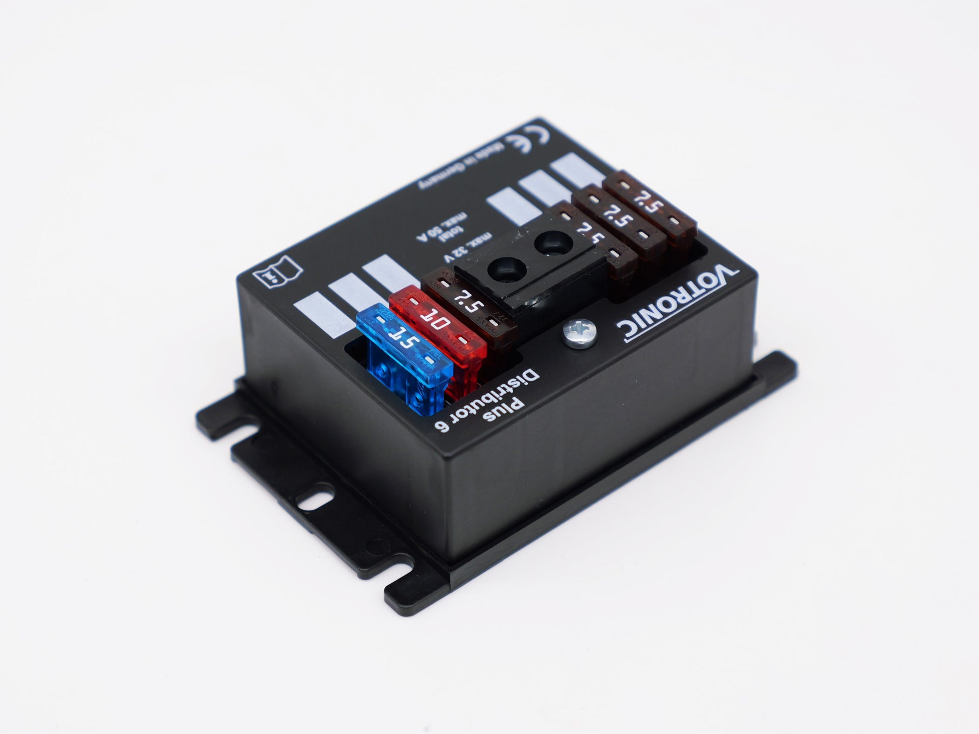 Stromkreisverteiler für sechs Stromkreise, incl. 6x ATO-Stecksicherung. Max. Belastbarkeit 50 Ampere.