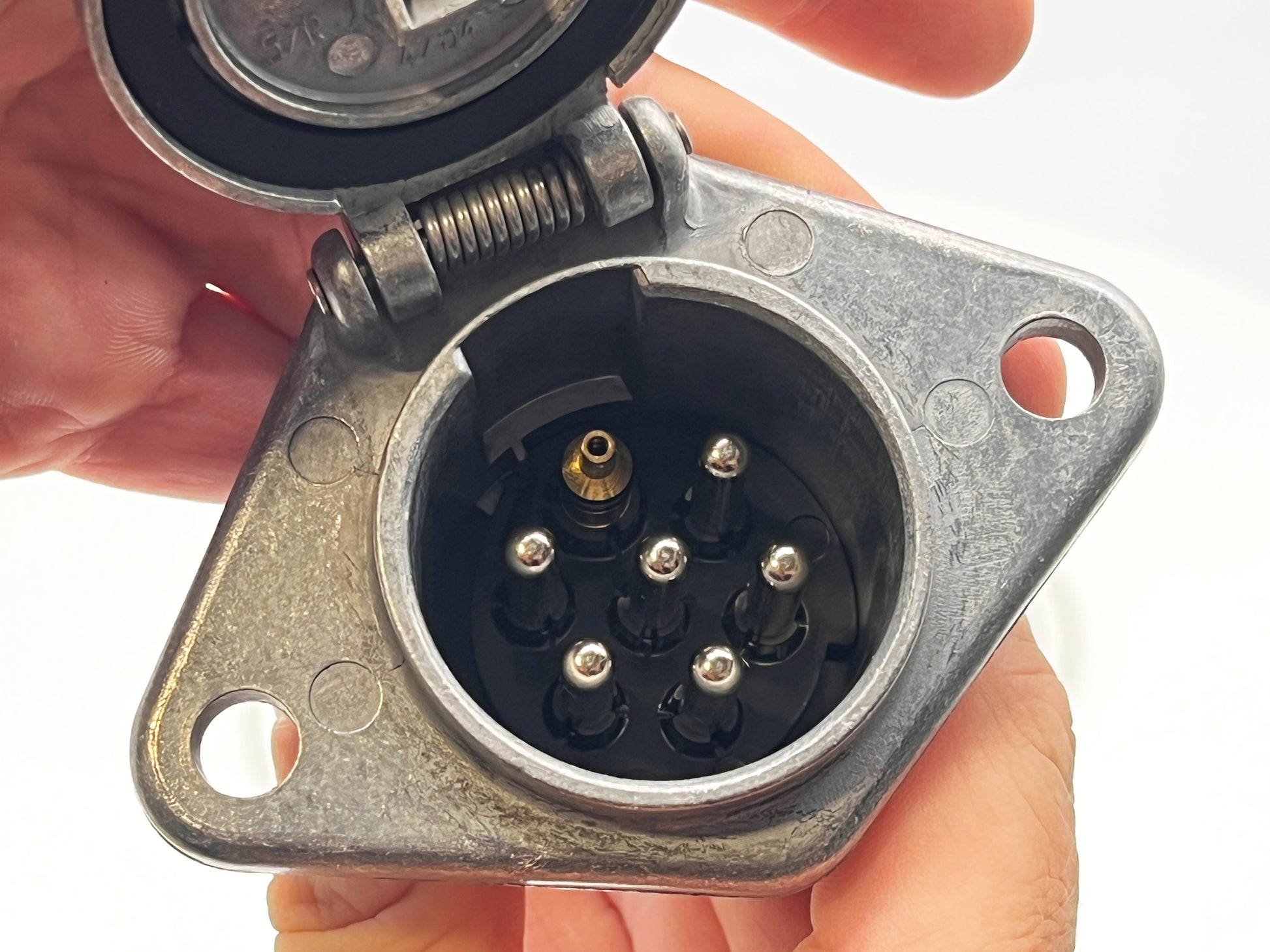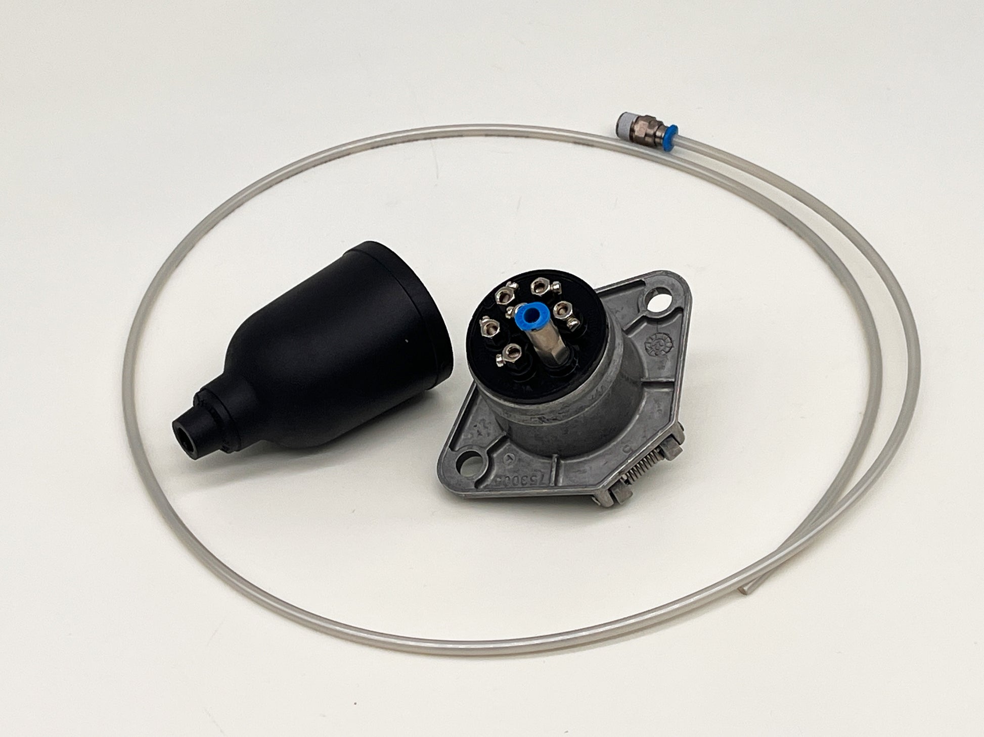 Die Steckdose hat sechs Kontakte und eine Luftleitung. Der maximale Druck beträgt 10 bar, die maximale Spannung 24 V.