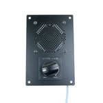 Schwarz eloxierte Lautsprecher-Blende mit 4 Befestigungslöchern und Stecker für SRG/SCG, Maße (HxBxT): 170 x 115 x 35mm, 10/15W, Hochleistungslautstärkeregler 8Ohm (± 25%) - somit bis zu 3 Lautsprecher parallel anschließbar