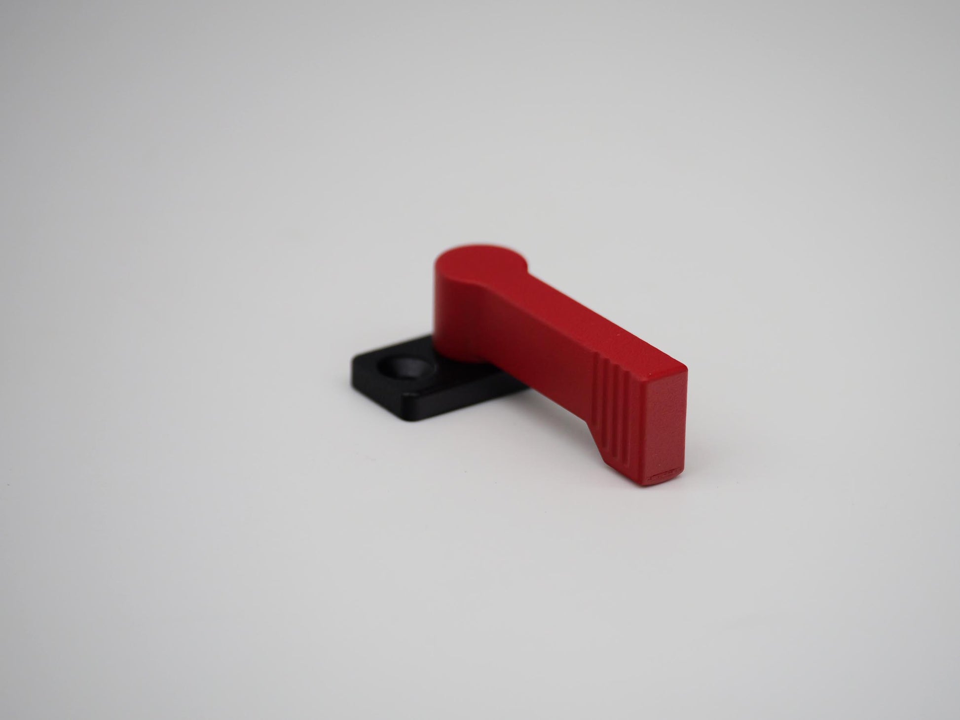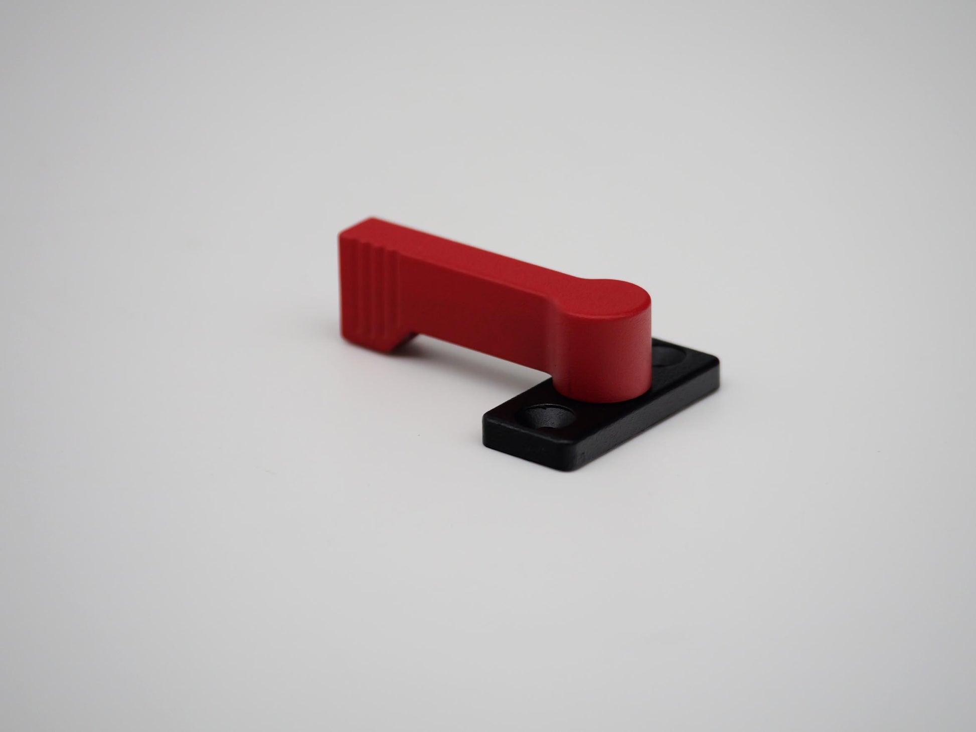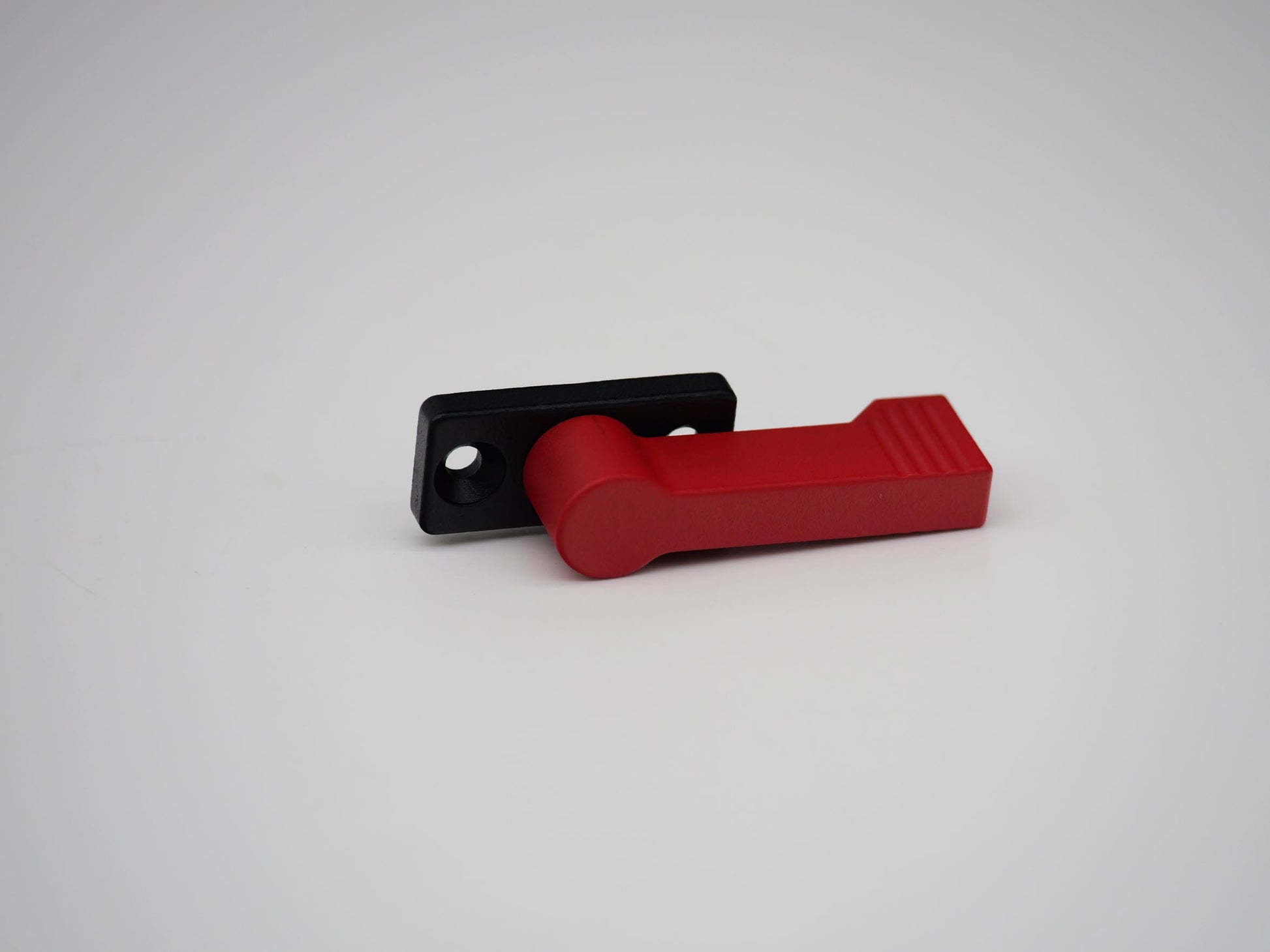 - Normgerechter roter Betätiger (nach Feuerwehr-Norm)