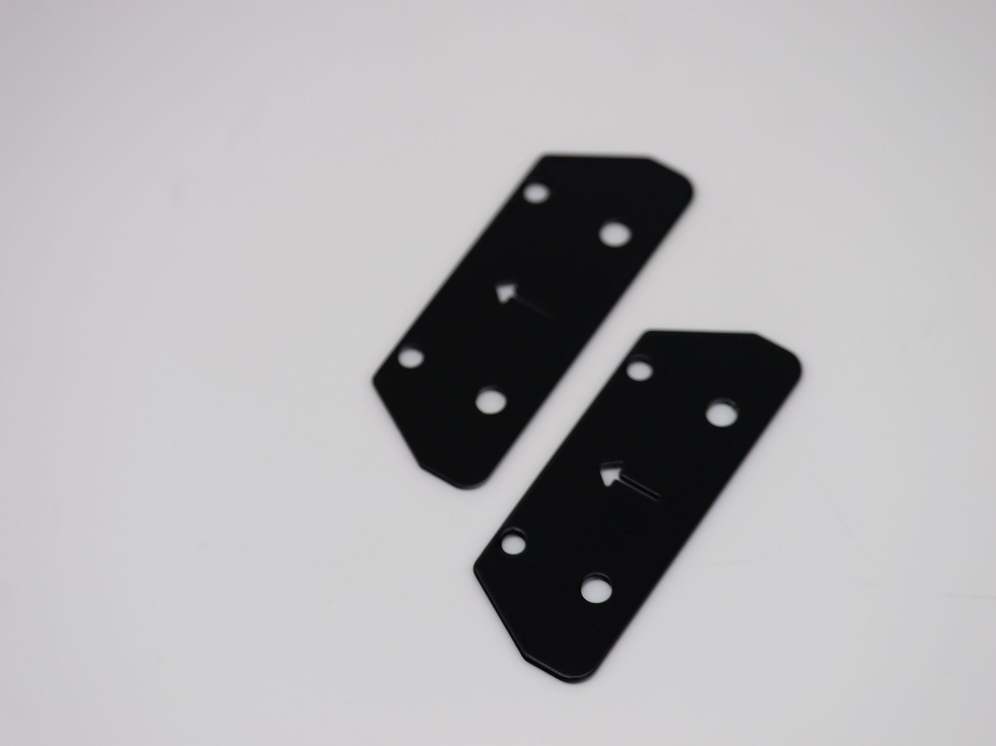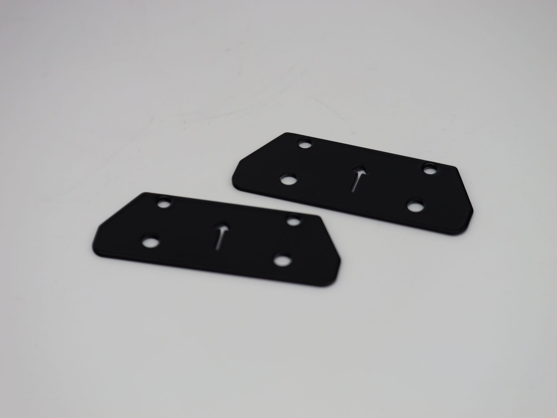 Mit dem Montageblech können die Blitzer bei einer Kühlergrillmontage nach hinten gesetzt werden. Wir empfehlen die Verwendung von Senkkopfschrauben zur Montage am Fahrzeug und die Einbringung von Senkungen am Montageblech.