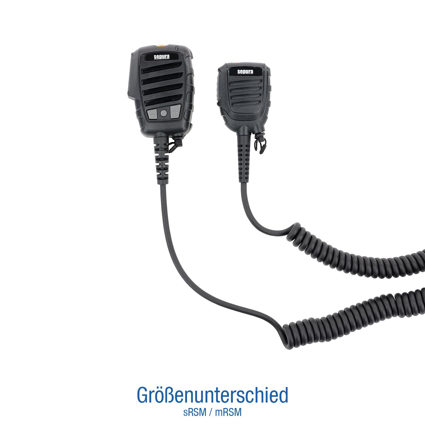 Das kompakte, robuste und leichtgewichtige Sepura Lautsprecher-Mikrofon mRSM bietet auch unter den anspruchsvollsten Einsatzbedingungen eine perfekte Akustik und überzeugende Produkteigenschaften. Der Anschluss eines Headsets ist über die 3,5 mm IP67 Klinkenbuchse ohne Gewinde (Mono/Stereo) möglich. Länge Spiralkabel im Ruhezustand: ca. 300 mm