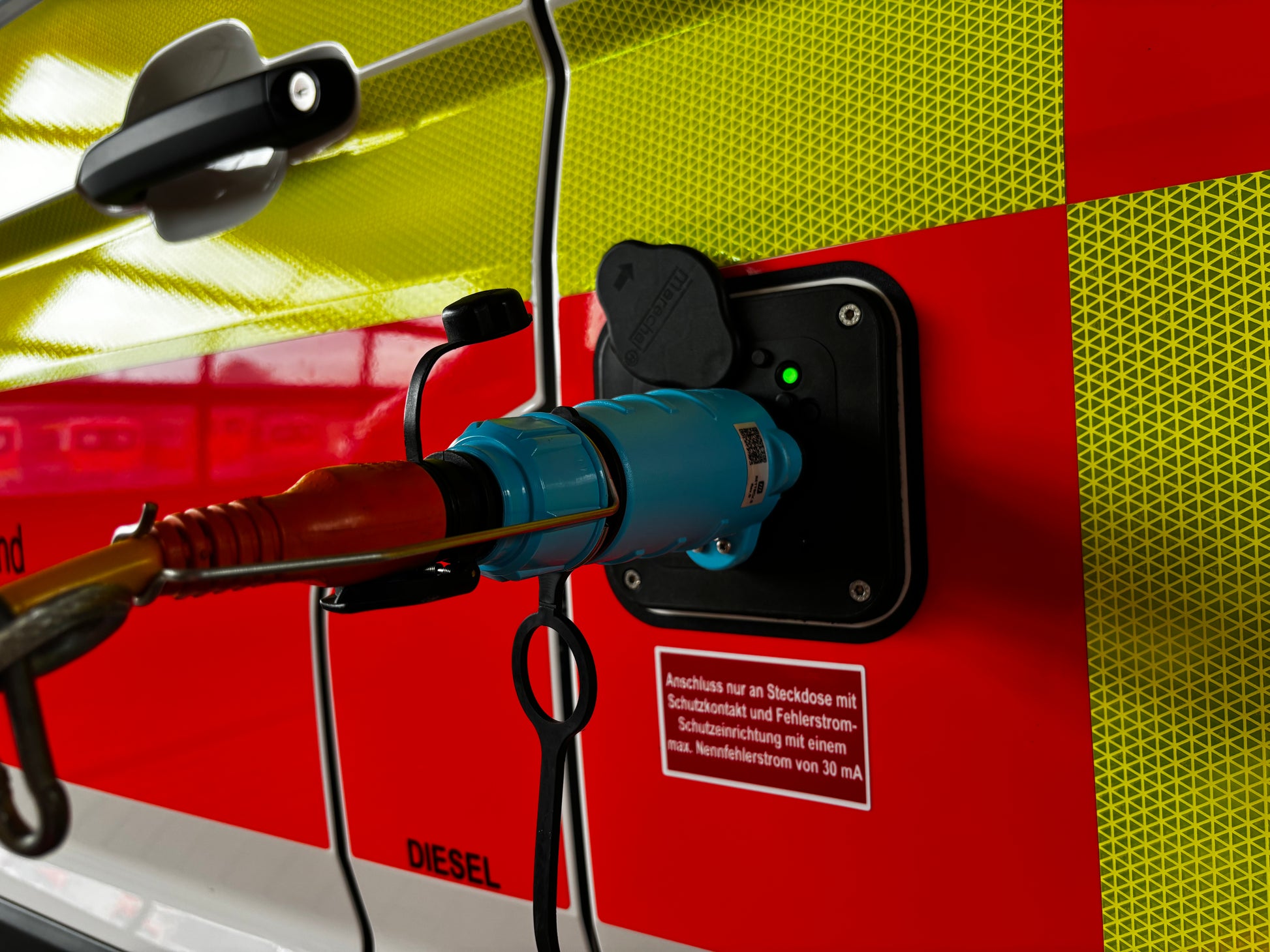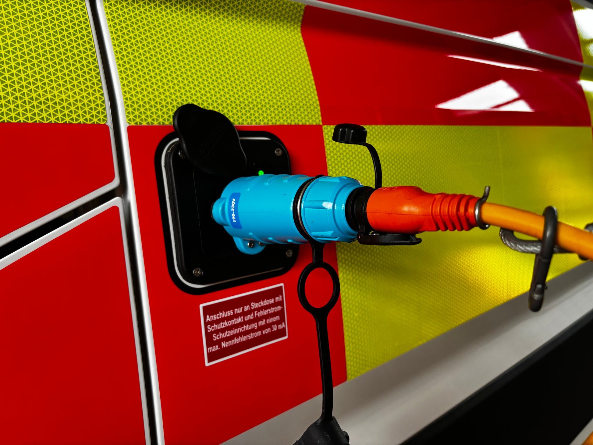 Mit diesem Adapter haben Sie die Möglichkeit mit über ein vorhandenes DEFA-Kabel (DEFA MiniPlug) in ein Fahrzeug mit RettBox S 230V einzuspeisen.
