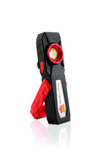 Diese kompakte und aufladbare Inspektionsleuchte lässt keine Wünsche offen; nahezu alle Anwendungsbereiche werden mit 4 Leuchtfunktionen abgedeckt: Fernlicht, breites Nahbereichslicht (COB), Rotlicht und rotes Blinklicht; die stufenlos dimmbaren PowerLEDs 3W + 10W-LED sorgen für eine hohe Leuchtkraft von bis ca. 500 Lumen; die mehrstufige Akku-Kapazitätsanzeige, das spritzwassergeschützte (IP 54) und extrem stoßfeste Kunststoffgehäuse mit Haftmagneten und Halteclip machen die Leuchte universell einsetzbar.
