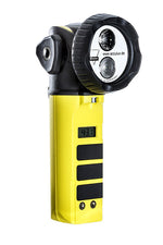 Die mikroprozessorgesteuerte, wiederladbare Knickkopf-Sicherheitshandleuchte, Modell HL 35 EX HIGH POWER mit Digitalanzeige, ATEX-Richtlinie 2014/34/EU und relevanten EMV-Vorschriften geprüft, hat eine KFZ-Zulassung. Die Leuchte ist mit zwei umschaltbaren Hochleistungs-LEDs bestückt und als Powerlicht schaltbar. Der eingesetzte umweltfreundliche Lithium-Ionen-Akku ohne Memory Effekt ist durch das intelligente Schaltungslayout tiefentladegesichert und dauerladbar. Dieser kann vom Anwender selbst getauscht werden. Aufgrund des 180° Grad schwenkbaren, verstellbaren Leuchtkopfes ist die Leuchte flexibel einsetzbar. Durch eine Klammer kann die Leuchte auch an der Schutzkleidung befestigt werden. Der Einsatz als Leuchte mit Notlichtfunktion ist ebenso vorhanden und kann vom Kunden abgeschaltet werden. Die Ladeeinheit für 100-230V AC, 12V DC und 24 V DC können von 1- bis 5-fach geliefert werden. Mit einem geringen Gewicht von ca. 0,6 kg liegt die HL 35 EX HIGH POWER an der Spitze vergleichbarer Handleuchten. Die Ausführung ist gemäß DIN 14649.