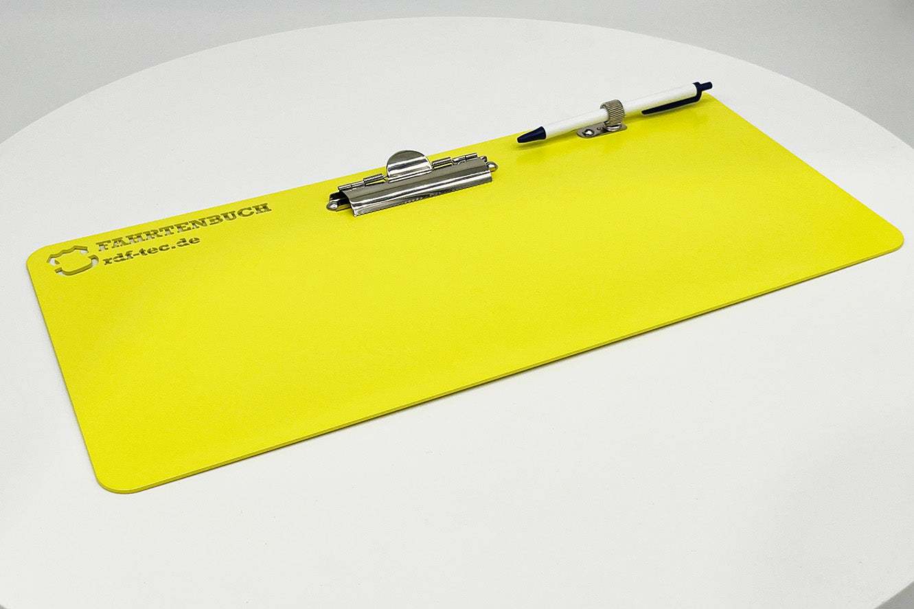 Praktisches Klemmbrett mit Stifte-Halterung für Ihr Fahrtenbuch! Sonderformat für aufgeklapptes Fahrtenbuch DIN A5.