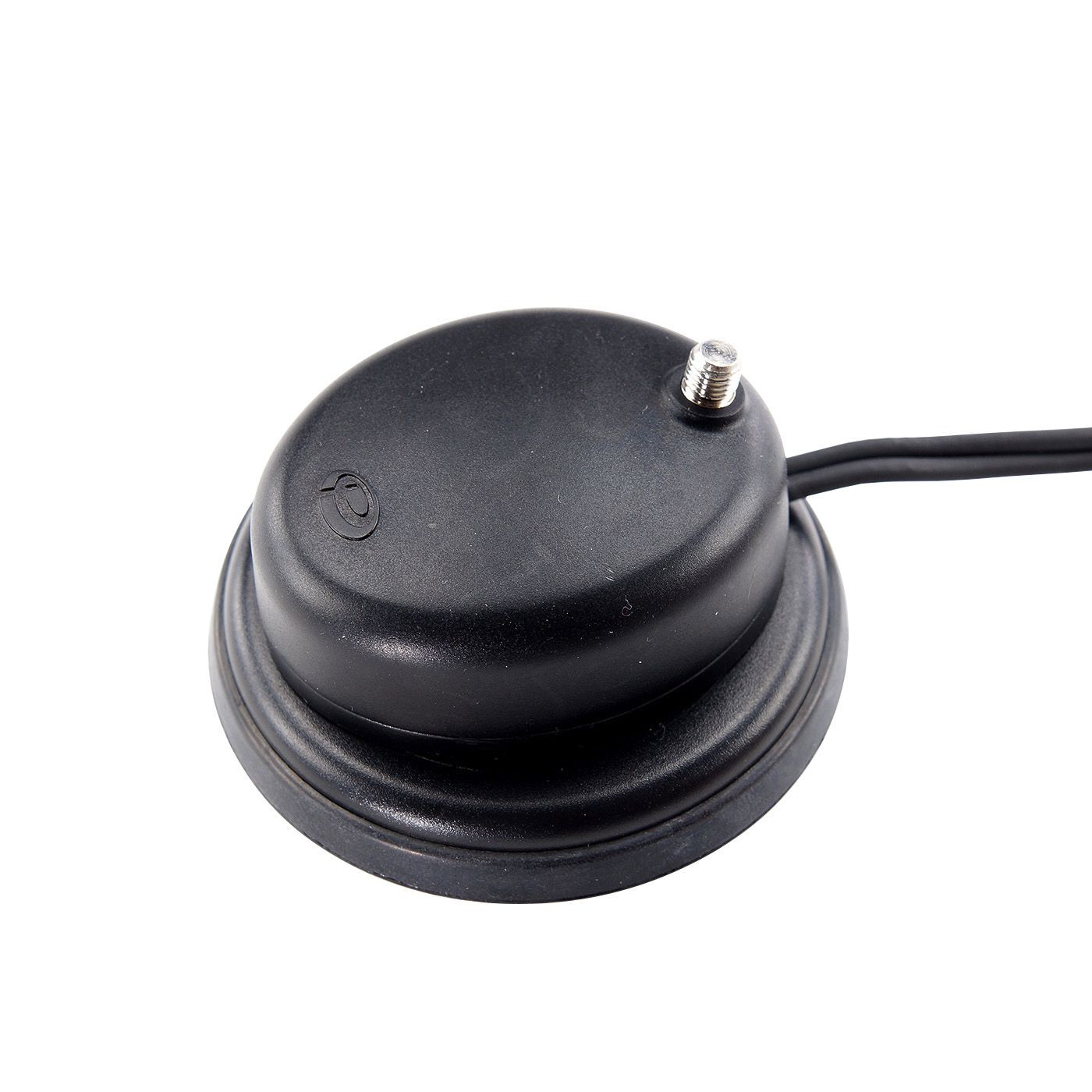 schwarz, Strahler-Länge: ca. 19cm, Fußdurchmesser: ca. 7cm, 5m Twin RG174 mit BNC-Stecker (HF) und SMC-Stecker (GPS).