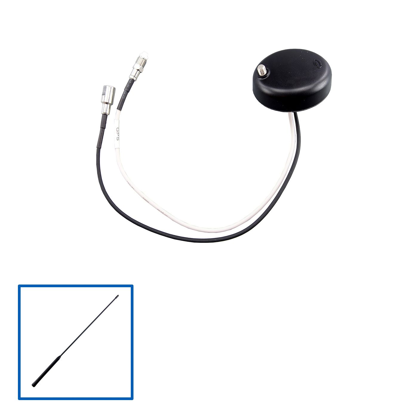 Strahlerlänge ca. 46,5 cm, Fuß mit 2x 0,3m RG174-Kabel (mit FME-Buchse für GPS- und FME-Stecker für Funk-Anschluss)