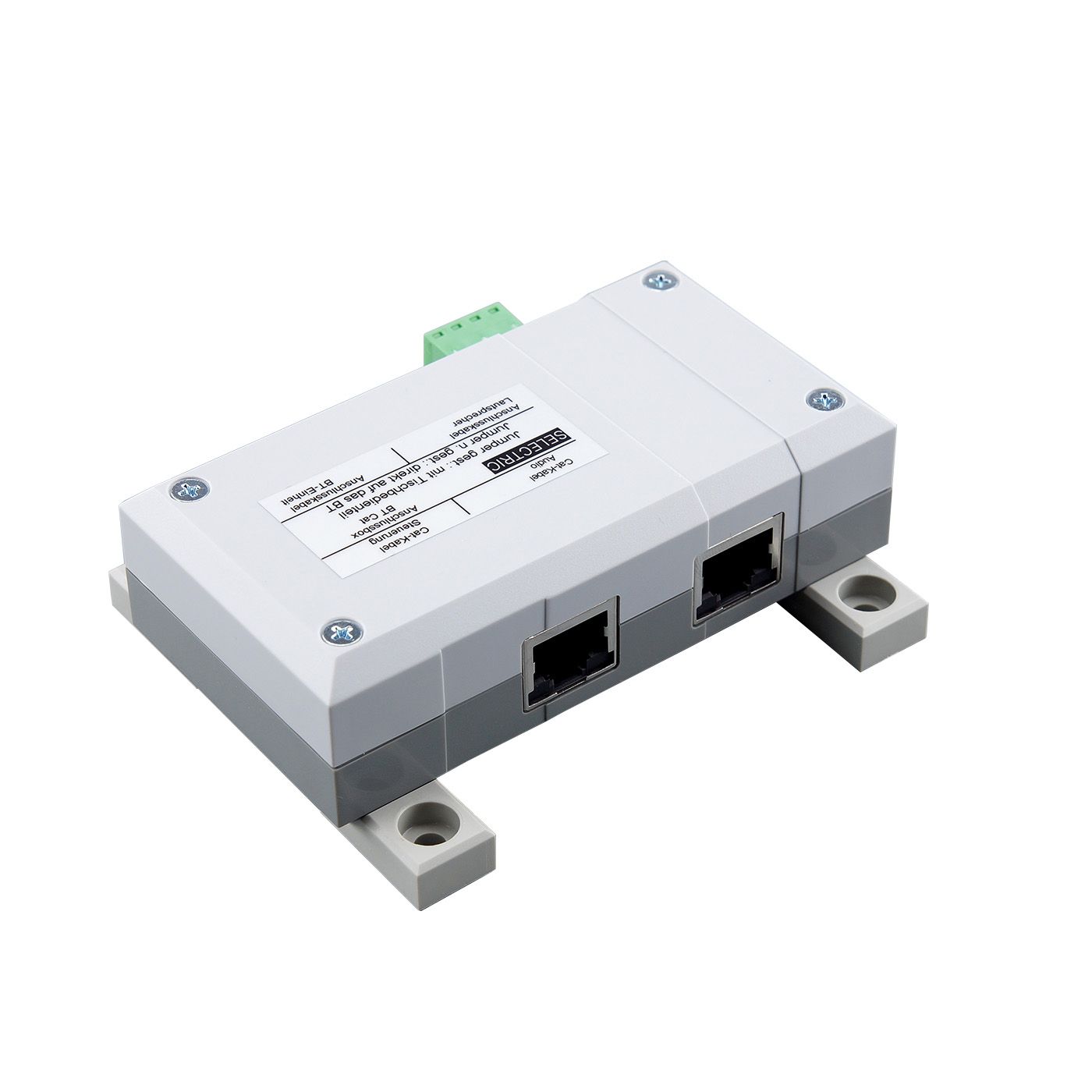 Über eine bis zu 100m lange strukturierte Verkabelung(2xCAT-Kabel)wird diese Anschlussbox an die Anschlussbox derS/E-Seite angeschlossen. An den Boxen stehen zusätzlich zwei Kontakte zur Verfügung die 1:1 durchgeschleift werden.