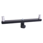 Mit Hilfe dieser Scheinwerfer-Aufnahmebrücke lassen sich zwei Flutlichtstrahler auf einem Dreibeinstativ mit Normzapfen befestigen. Die Aufnahmebrücke besteht aus einem Aluprofil mit zwei Aluminium-Aufnahmezapfen nach DIN sowie einem Adapter zur Befestigung der Brücke auf dem Normzapfen des Stativs. Passend zu allen Dreibeinstativen und Strahlern