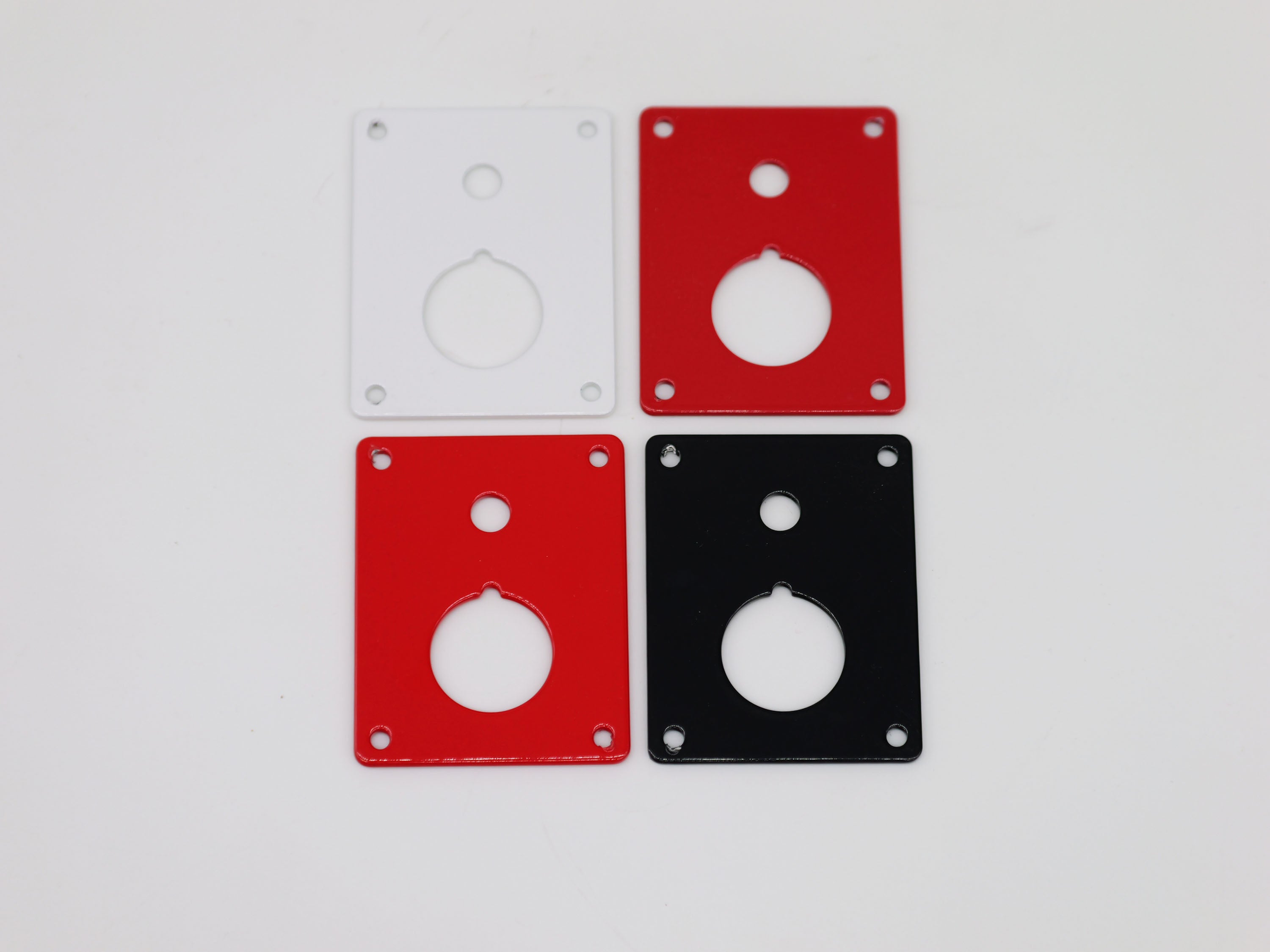 Pulverbeschichtet in den Farben Schwarz, Weiß und Feuerrot und Verkehrsrot.